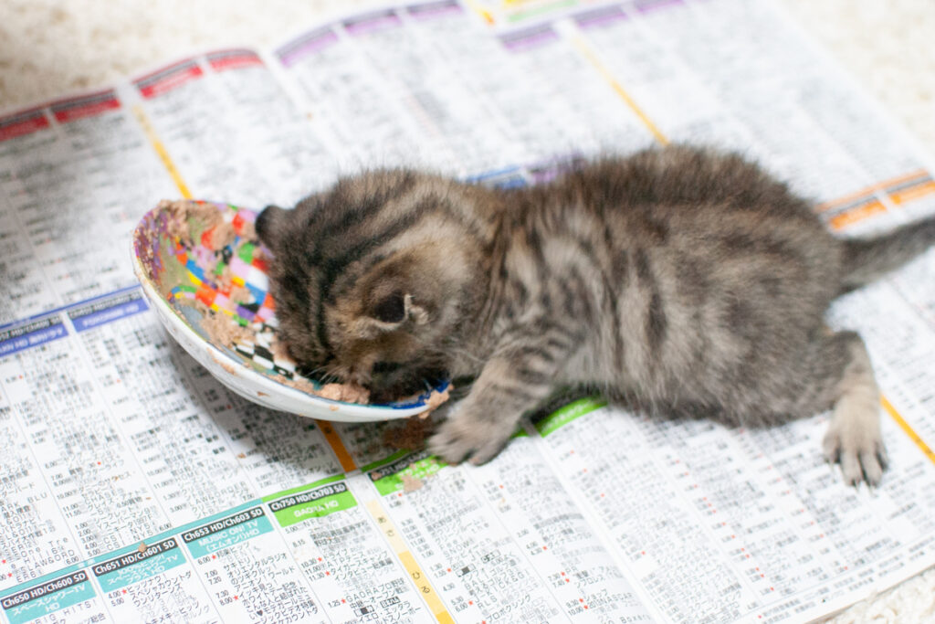 赤ちゃん猫が必死になって、吸い付いてくるので、うまくあげるのは少しコツが必要です。