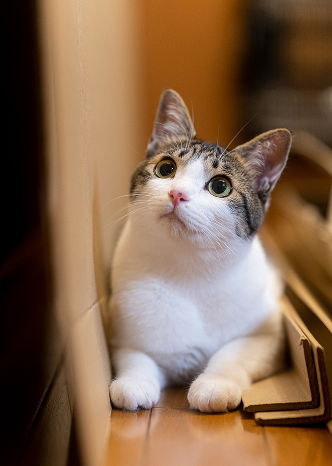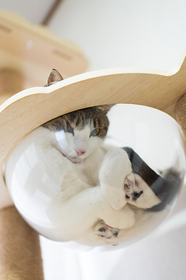 たとえば、キャットタワーにいるところを下から撮るのもかわいいですよ。