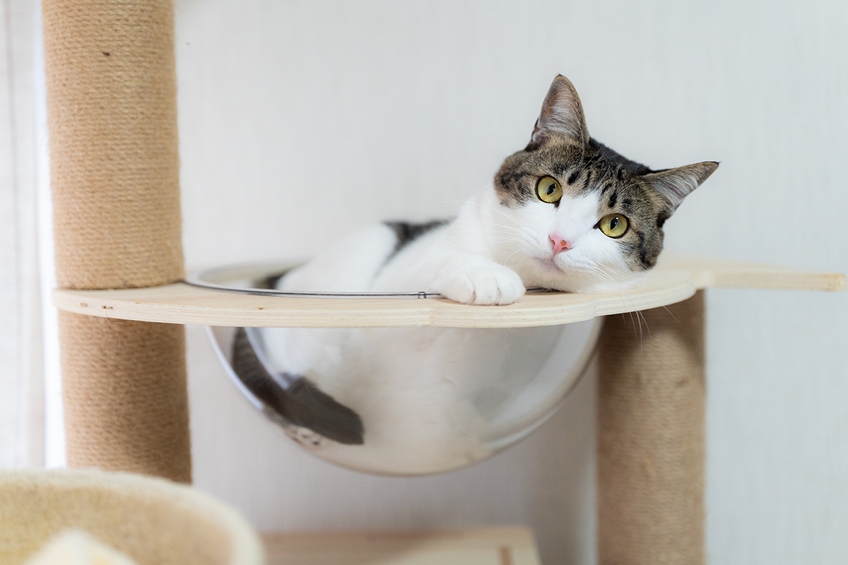 猫は高い場所が好きなので、窓際にキャットタワーがあるだけで自然とそこでくつろぐようになります。