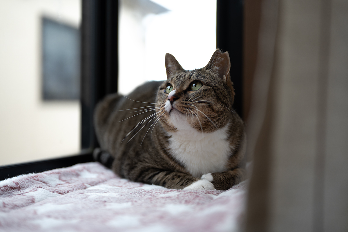 窓から入る光は室内の照明よりずっと明るく、カーテン越しに入るやわらかい光は、猫の毛並みや表情を自然にきれいに見せてくれます。