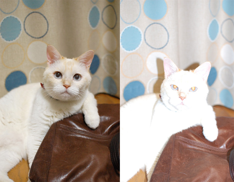 でも実はもうひとつ大きな理由があって、明るい場所では、猫の瞳孔が細くなるんですね。